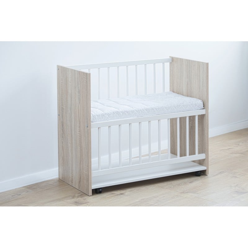 Матракът е разположен на височина 45 см – идеален е за повечето видове легла. Леглото е снабдено с колелца за лесно придвижване.