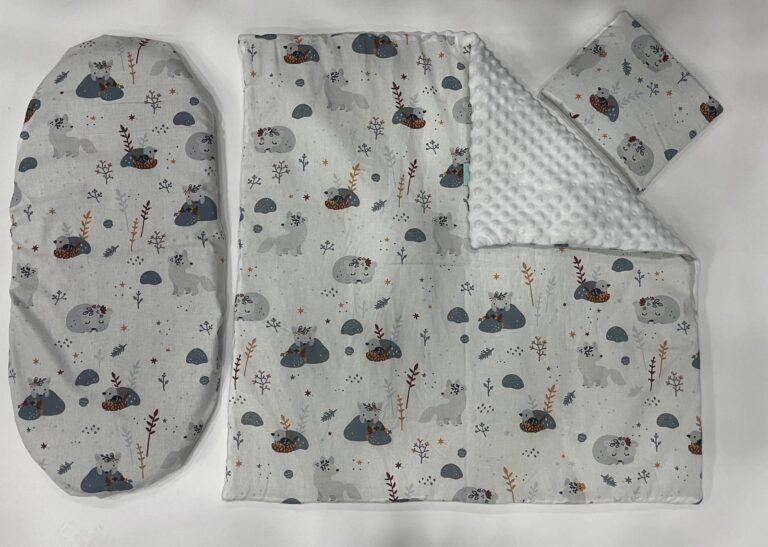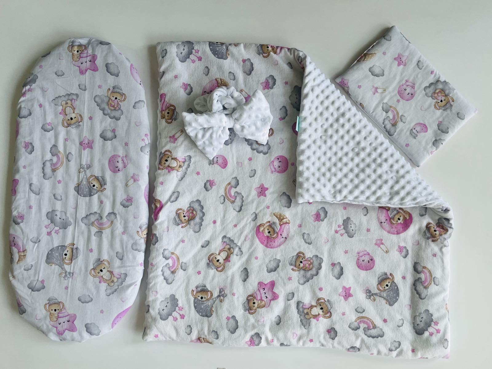Комплект за количка 3ч + панделка за изписване – Зима Сънливко розов+бяла панделка