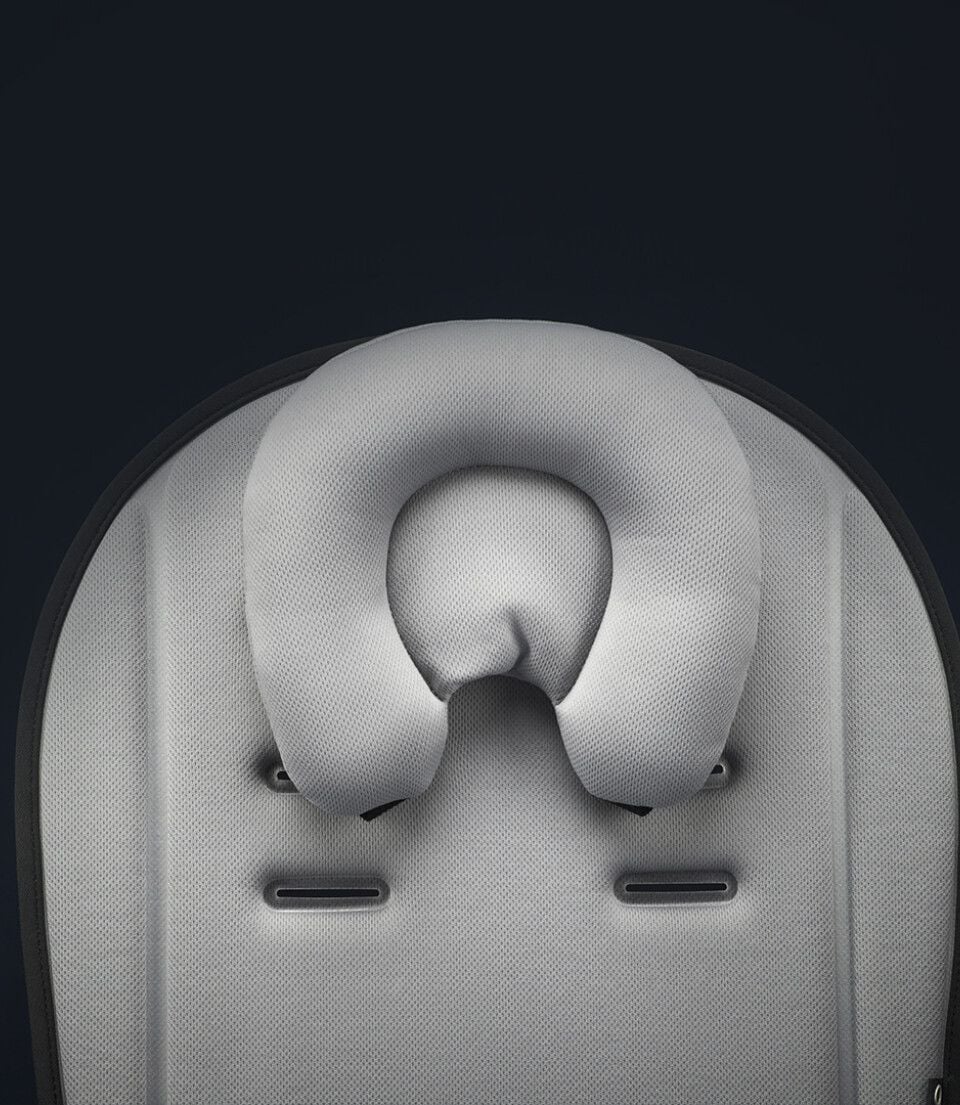 Мемори пяната покрива контурите на тялото на бебето и бързо възстановява оригиналната си форма. Страничните части са разширени в областта на главата, пълни с мемори пяна за допълнителна защита и комфорт.С прорези за коланите. Сваляща се U-образна възглавница за опора на главата и шиятаХипоалергенни, дишащи материалиМоже да се пере на 30o С